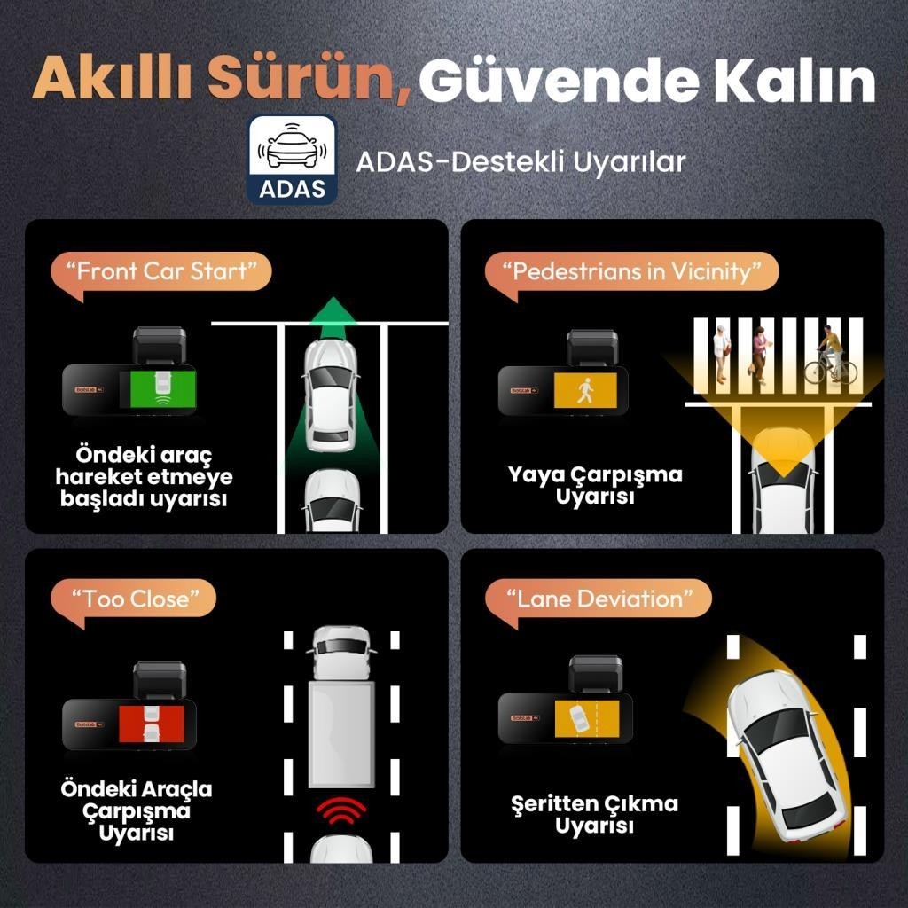 +360 Botslab G980H Pro ADAS Ön Gerçek 4K UHD Arka 2K QHD 170° Geniş Açı Gps+WiFi Araç İçi Kamera + Park Modu