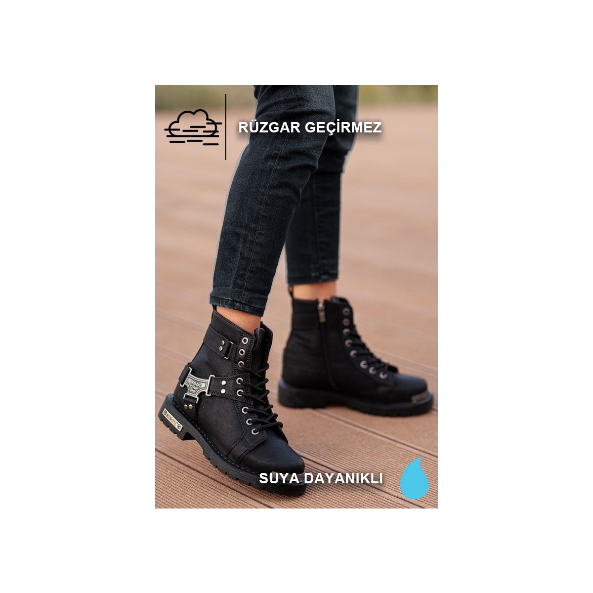 Dayanıklı suni deri kaplama uzun ömürlü kullanım sunarken, iç astarı ayağı sıcak tutar ve terlemeyi önler. Güçlendirilmiş burun ve topuk desteği, sürüş sırasında ekstra güvenlik sağlar.