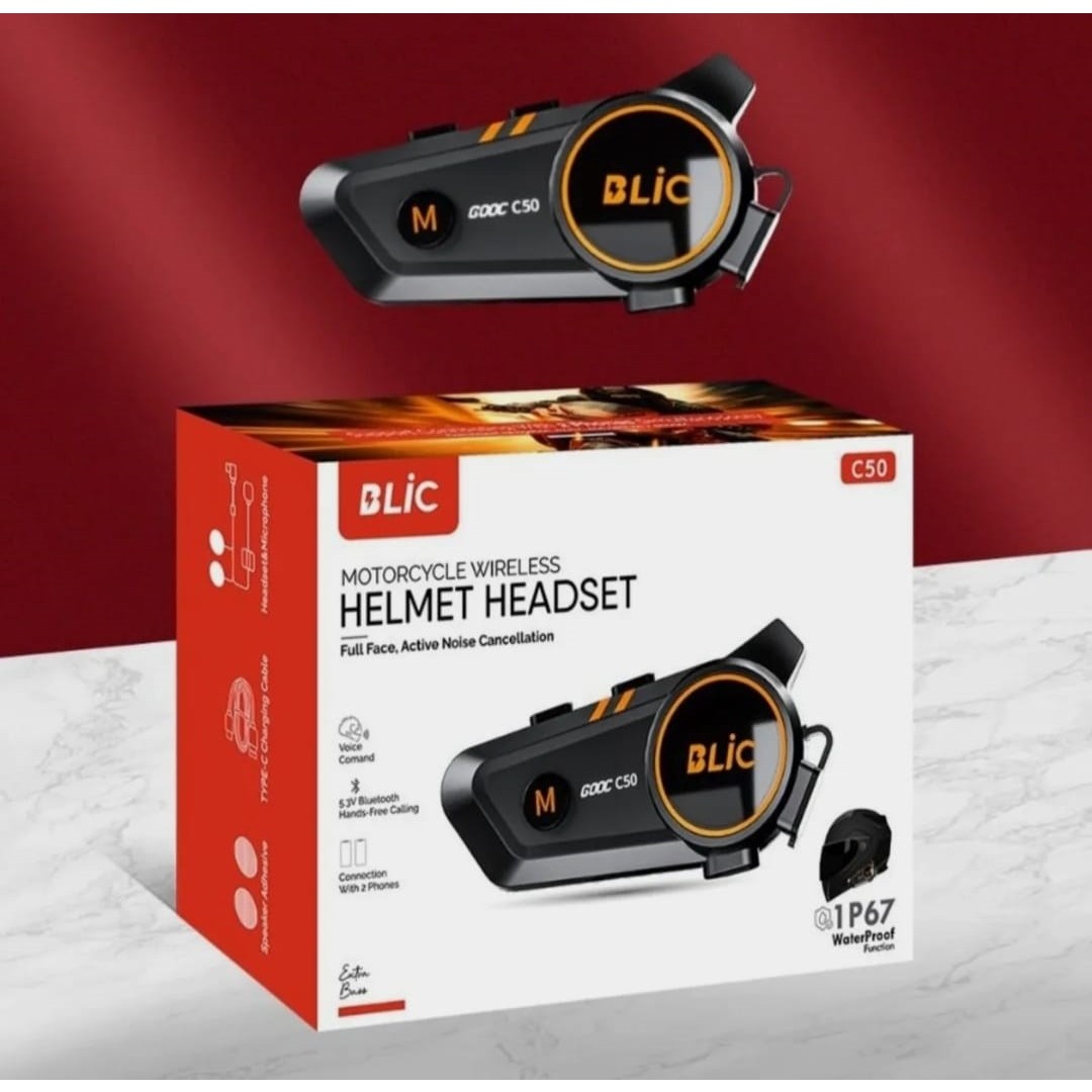 Blic C50 Wireles intercom, kulaklık seti,2 ad mikrofon, şarj kablosu, takma aparatları, kullanım kılavuzu
