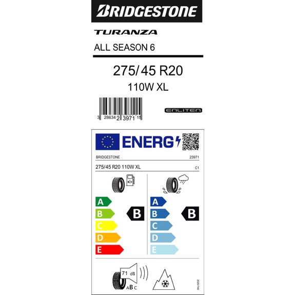 Bridgestone 275/45 R20 110W Xl Turanza All Season 6 Dört Mevsim Lastiği (Üretim Yılı: 2023)