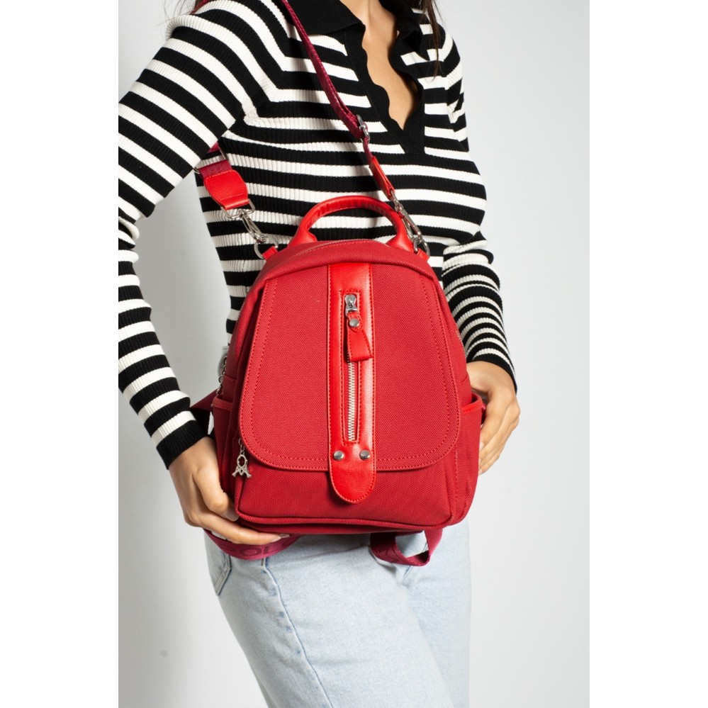 Günlük spor şık model çantamıza ait ölçülerimiz yükseklik 28 cm genişlik 25 cm derinlik 13 cmdır. Ön detayında ki fermuar görsel amaçlıdır. Ön kapak altında fermuarlı bir göz vardır Yan tarafında 2 adet cep vardır. Arka yüzeyinde bir adet fermuarlı göz bulunmaktadır. Çanta iç detayında 1 adet fermuarlı göz bulunmaktadır. 2adet fermuarsız göz vardır. Çantamız hem omuz hem sırt kullanımına uygundur