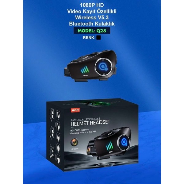 Q-28 Su Geçirmez Wireless 30fps Hd Yatay/Dikey 1920x1080p Video Kayıt Özellikli Motosiklet V5.3 Bluetooth Kulaklık, Motosiklet Sürücülerinin Güvenliğini Artıran Ve Aynı Zamanda Multimedya Özellikleri Sunan Bir Cihazdır. İşte Bu Ürünü Tanıtan Temel Özellikler: