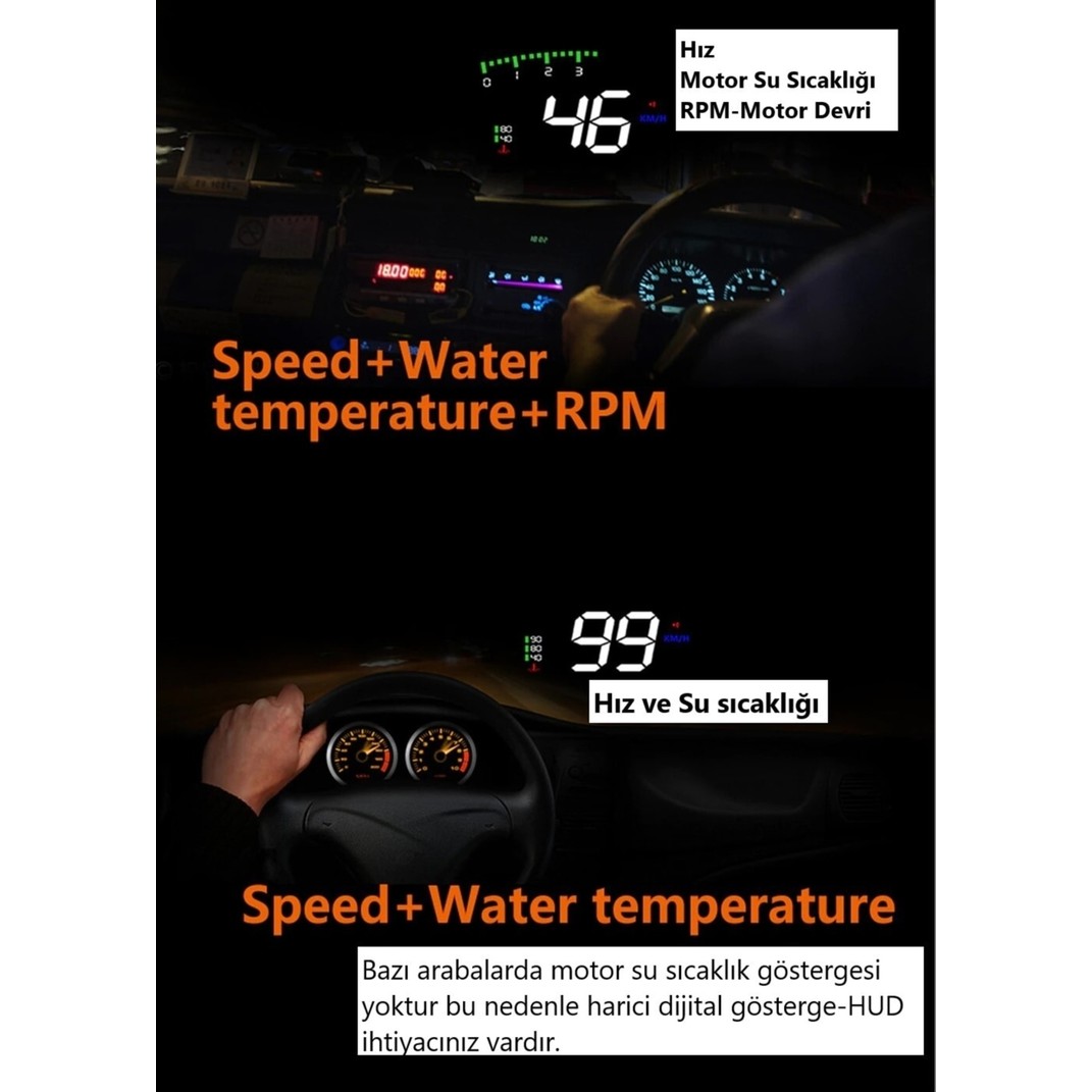 Aşırı hız uyarı sistemi, Hararet Su Sıcaklık Alarmı, Düşük Voltaj-Akü Alarmı HUD Projektör