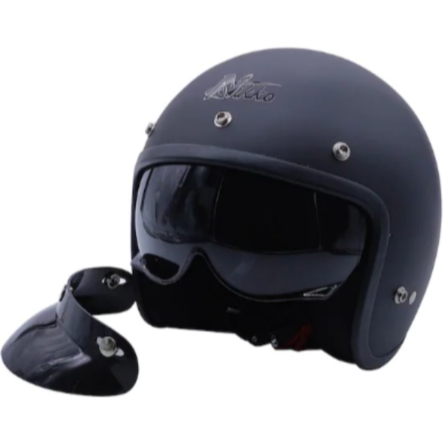 Ebakbak Motosiklet Chopper Cruiser Yarım Açık Kaskı ABS Malzeme Ce Güneş Vizörlü Mat Black Motor Kask
