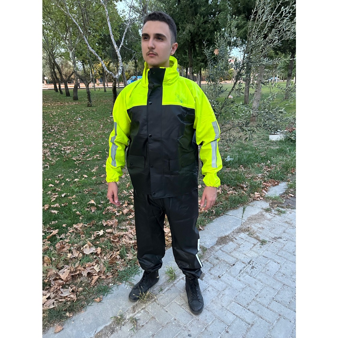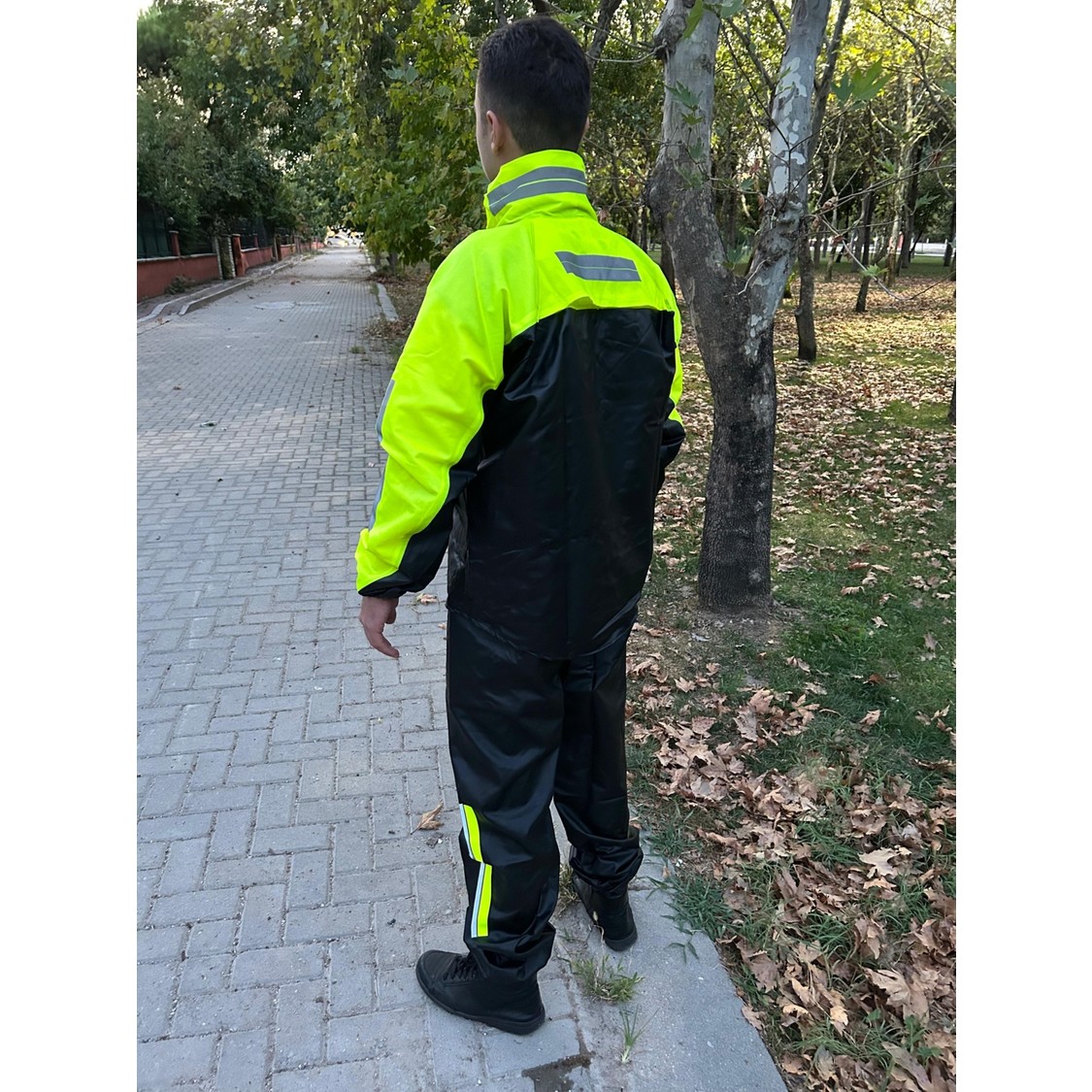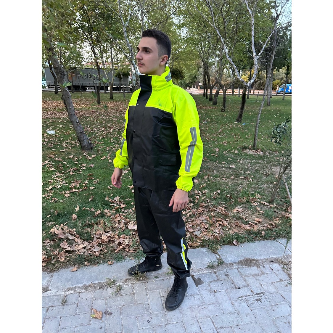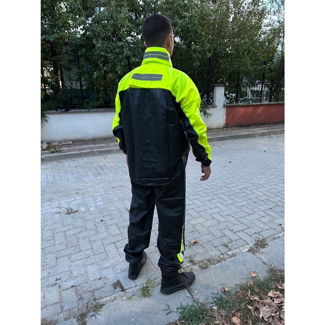 Geborgenheit Fosforlu Yeşil Motorcu Yağmurluk File Astarlı Motosiklet Yağmurluk Cepli