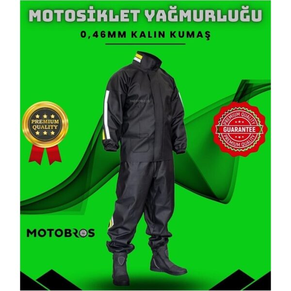 Motobros Reflektörlü Özel Kesim 0,45MM Kalın Yağmurluk Takım Su Geçirmez Pvc Çadır Kumaşı Motor Ekstra Kalın