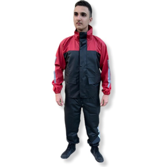 Geborgenheit Kırmızı Motorcu Yağmurluk File Astarlı Motosiklet Yağmurluk Cepli