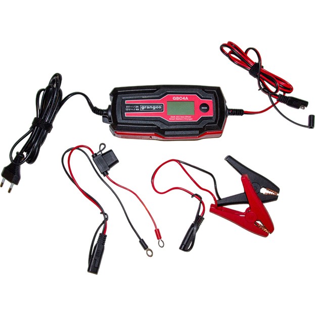 Grangos GBC4A, 6V ve 12V akülerle uyumlu, suya ve toza dayanıklı bir tasarıma sahip, 70 Watt gücünde akıllı bir şarj cihazıdır.