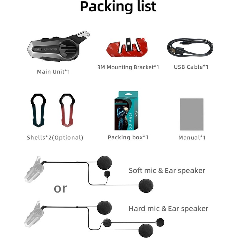 KEMBORN X2 PRO 2ADET 2 kişilik 1200 MT İntercom interkom Motorsiklet Kask Bluetooth Kulaklık Seti.