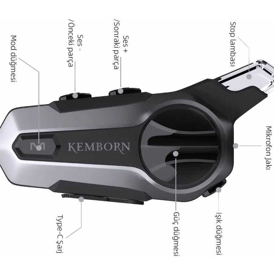 - KEMBORN X2 PRO 1ADET 2 kişilik 1200 MT İntercom interkom motosiklet Kask bluetooth kulaklık Seti