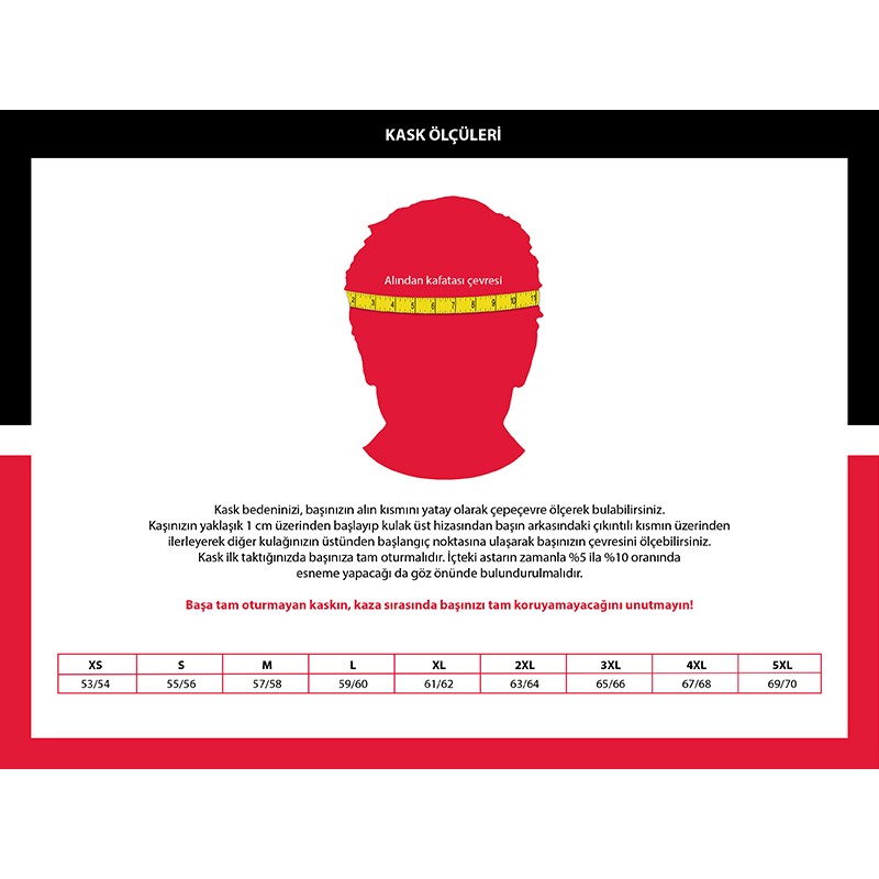 • 3 farklı kabuk boyutu XS-S / M-L / XL-3XL