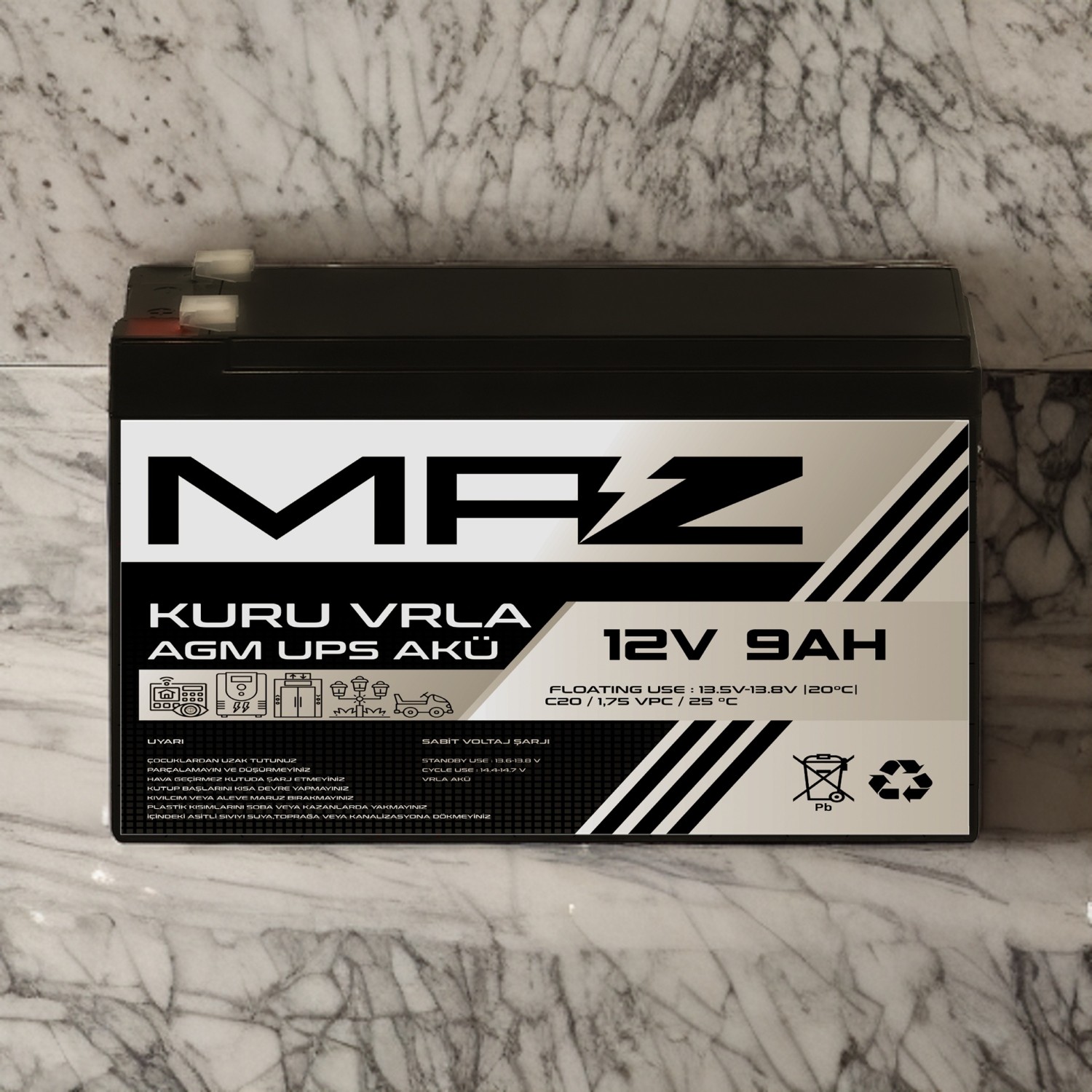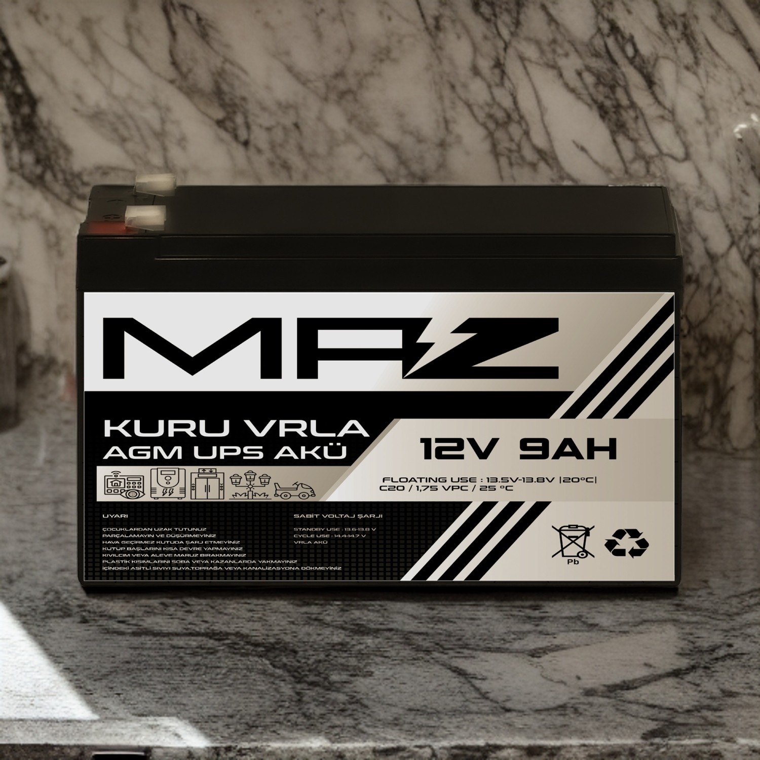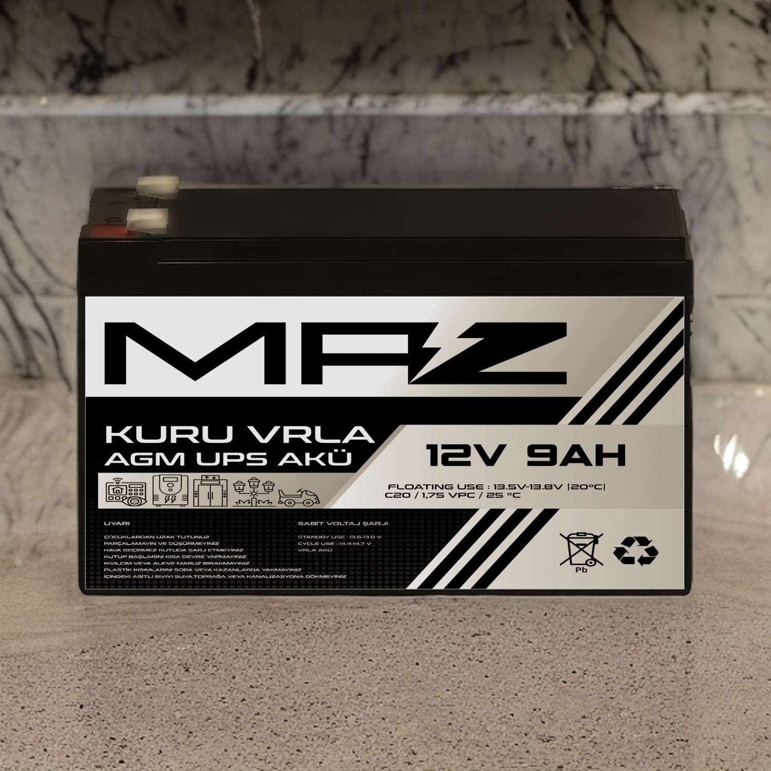 MAZ Akü 12 Volt 9 Amper Kuru AGM VRLA Akü (12V 9AH).