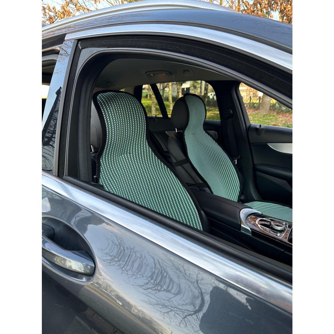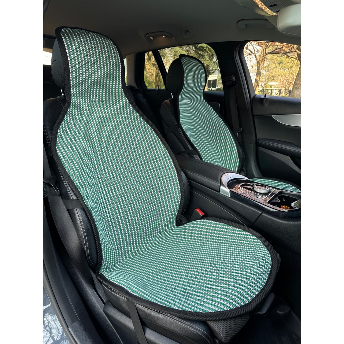 Meka Part Oto Koltuk Koruyucu Kılıf 2 Parça Universal Ön Koltuklar Yeşil Beyaz %100 Pamuk