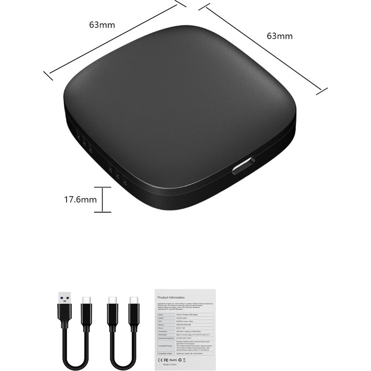 *Carplay kablosuz adaptör, cep telefonları ve araç arasında 5.2 Bluetooth modülü ve 5.8 GHz Wi-Fi üzerinden hızlı ve sağlam bir bağlantı sağlayan entegre 5G çipe sahiptir.