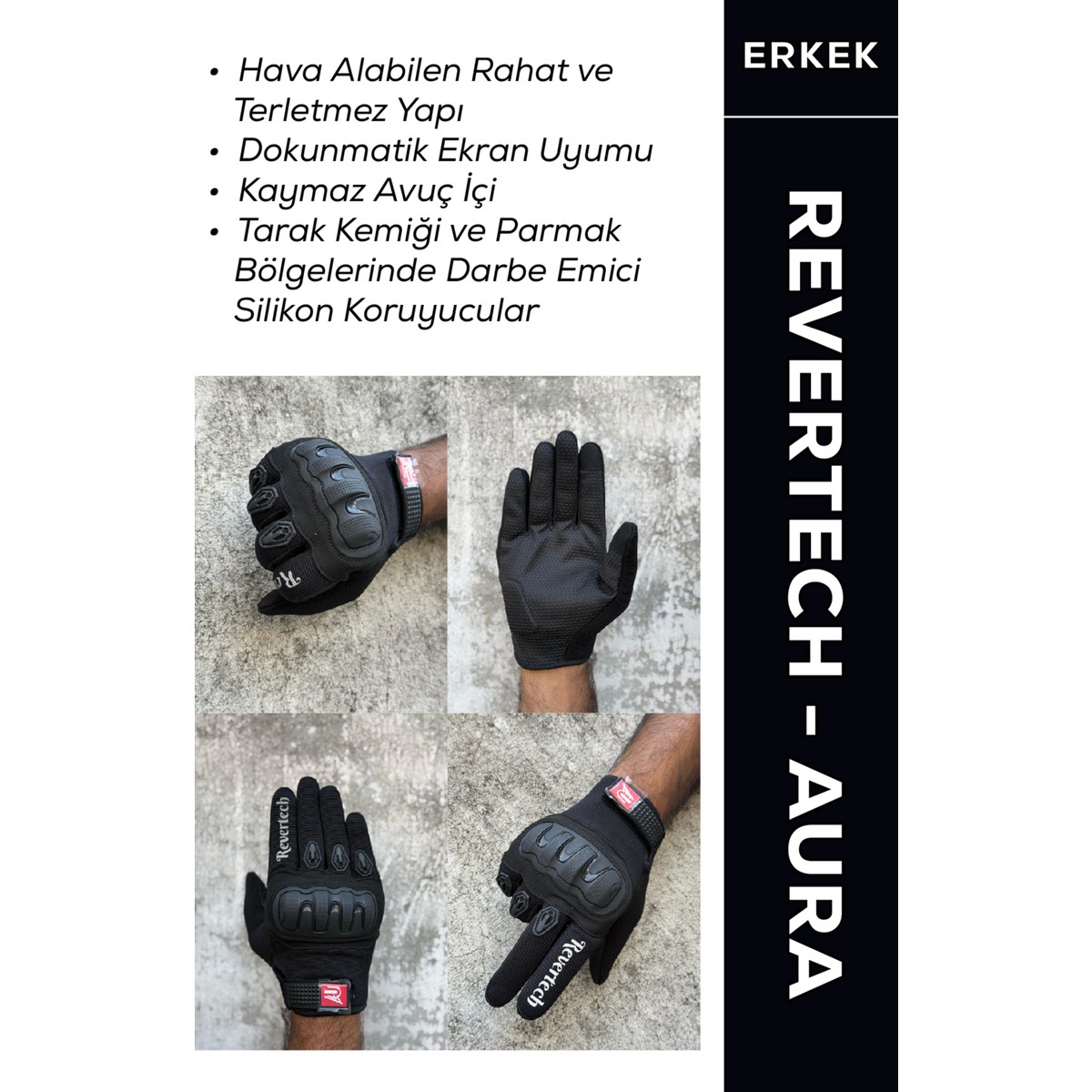 Revertech Aura Siyah – Dokunmatik Ekran Uyumlu Motosiklet Eldiveni (Erkek)