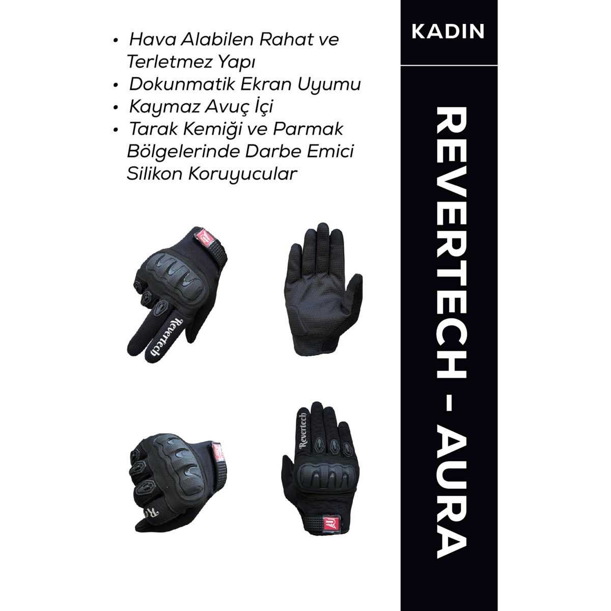 Revertech Aura Siyah – Dokunmatik Ekran Uyumlu Motosiklet Eldiveni (Kadın)