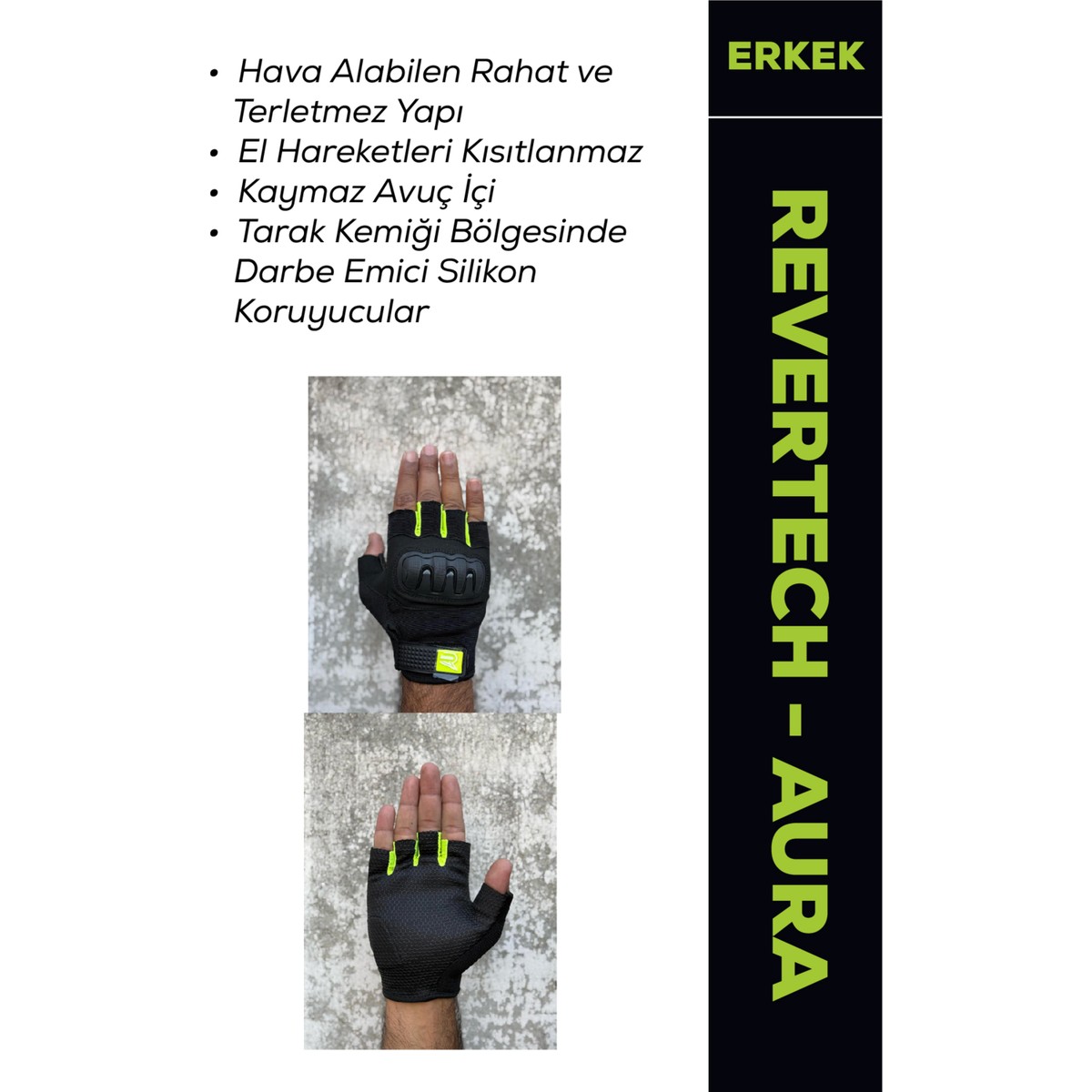 Revertech Aura Siyah – Neon / Yarım Parmak – Kaymaz Avuç Içi Özellikli Motosiklet Eldiveni (Erkek)
