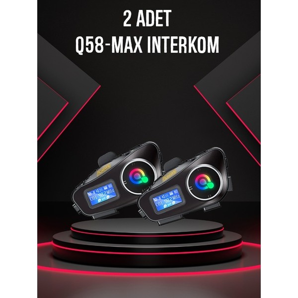 Always Teknoloji 2 Adet Q58-MAX Radyolu Telsiz Özellikli 2 Kişi Bağlantılı Bluetooth Kask Kulaklık Ekranlı Fenerli Müzik ve Intercom
