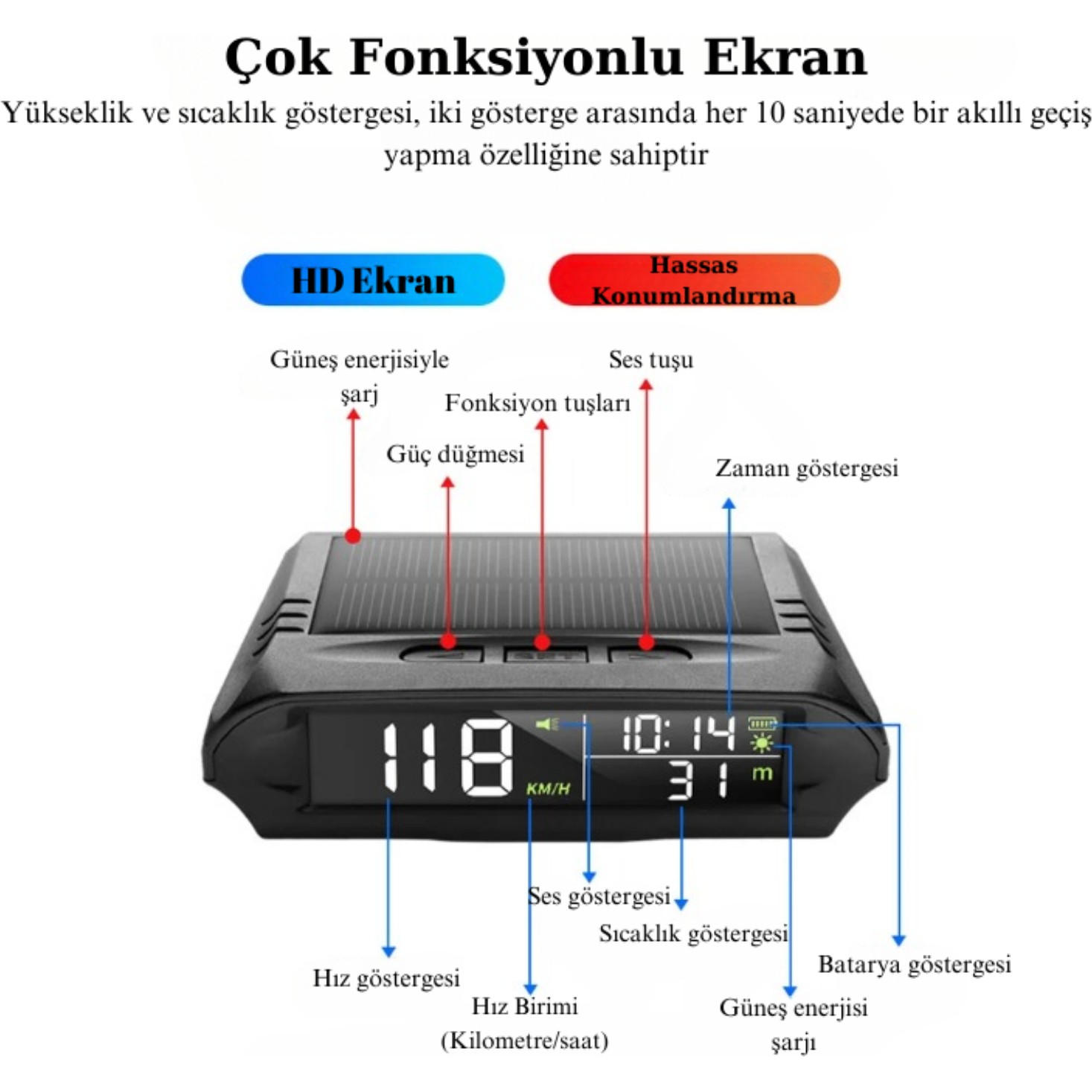 Multizone Tır Kamyon ve Arabalar Için Uyumlu Gps Hız Göstergesi Güneş Enerjili Hız Ölçer
