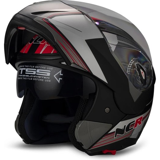 NCR Çene Açılır Kask Vizörlü Kırmızı-Siyah XL Beden Ece Belgeli
