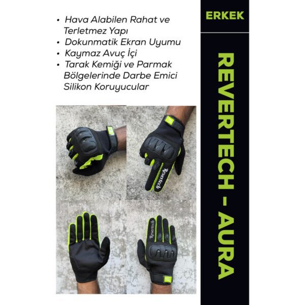 Motokit Revertech Aura Siyah / Neon – Dokunmatik Ekran Uyumlu Motosiklet Eldiveni (Erkek)
