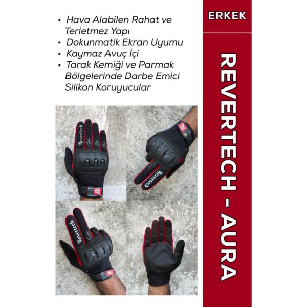 Motokit Revertech Aura Kırmızı – Dokunmatik Ekran Uyumlu Motosiklet Eldiveni (Erkek)
