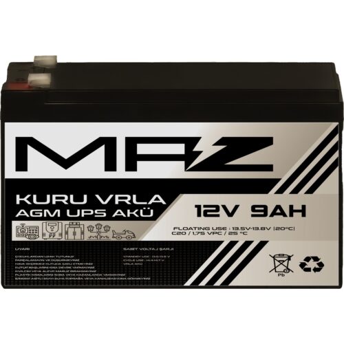 Maz Akü 12 Volt 9 Amper (Ah) Kuru Agm Vrla Güç Kaynağı Ups Akü