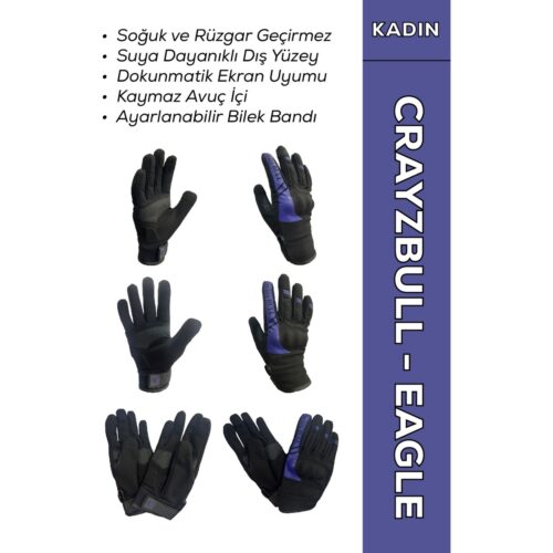 Motokit Crayzbull Eagle Mor Su ve Rüzgar Geçirmez Kışlık Kadın Motosiklet Eldiveni