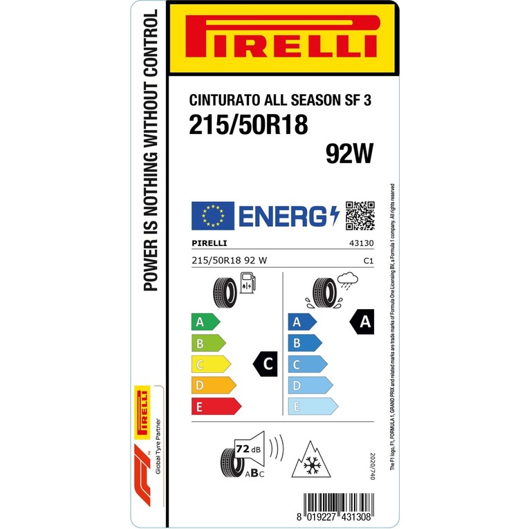 Cinturato All Season SF3, yüksek hızda (92W) güvenli sürüş ve düşük yuvarlanma direnci sayesinde yakıt verimliliği sağlar. Gelişmiş sırt deseni, ıslak ve kuru zeminlerde mükemmel frenleme ve yol tutuşu sunar. Her mevsim sağlam performans arayan sürücüler için mükemmel bir tercihtir.