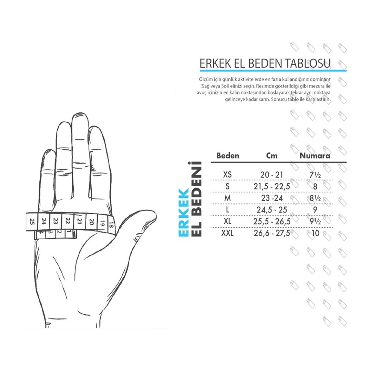 Kaymayı Önleyici Malzemeler: El içi ve parmak kısımlarında kaymayı önleyici özelliklere sahip malzemeler kullanılarak, kullanıcının güvenliğini ve tutuşunu artırır.