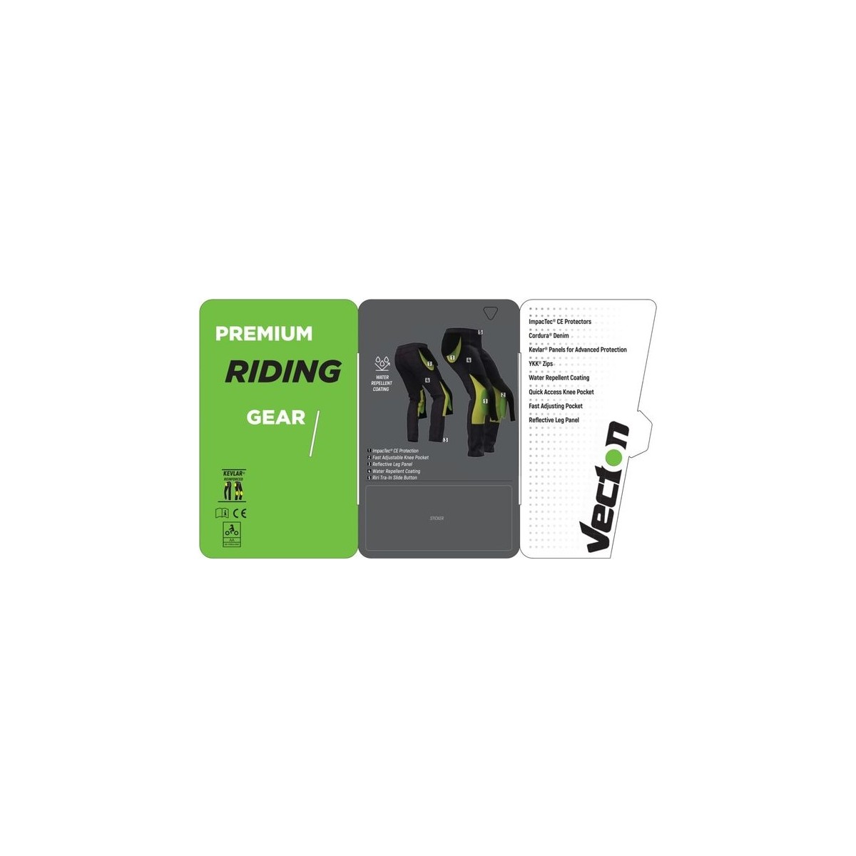 Vecton AD Pro Black Modelimizde Korumalar Dışarıdan çıkarılıp takılmaktadır. CE Onaylı ImpacTec Korumalar. Su iticilik Özelliği, Cordura Denim, Kevlar Coolmax Cordura Panel, Ayarlanabilir diz koruyucu yüksekliği, EN 17092-3:2020 Level AA Sertifika.