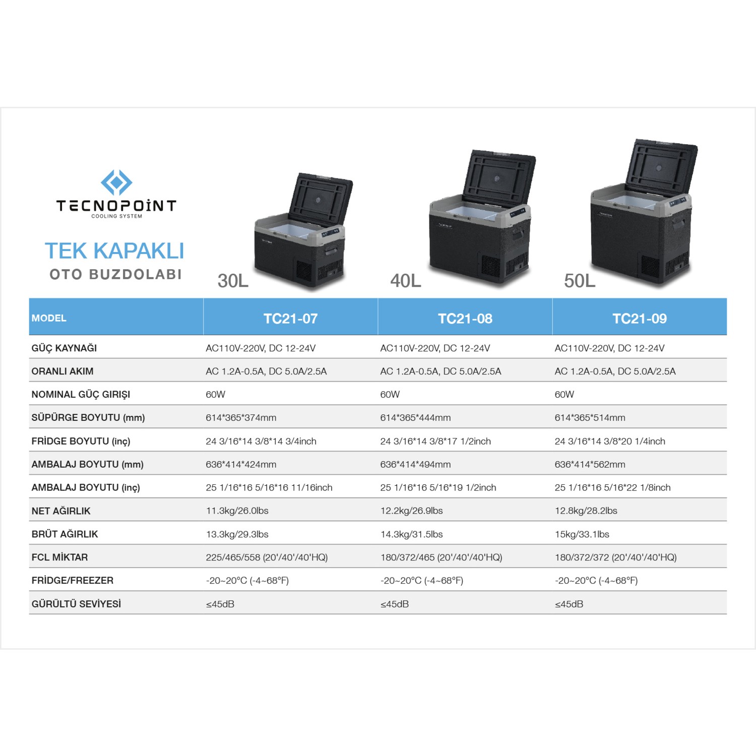 Oto buzdolabı arayışınızda ideal çözüm: Tecnopoint TC21-08 40L.
