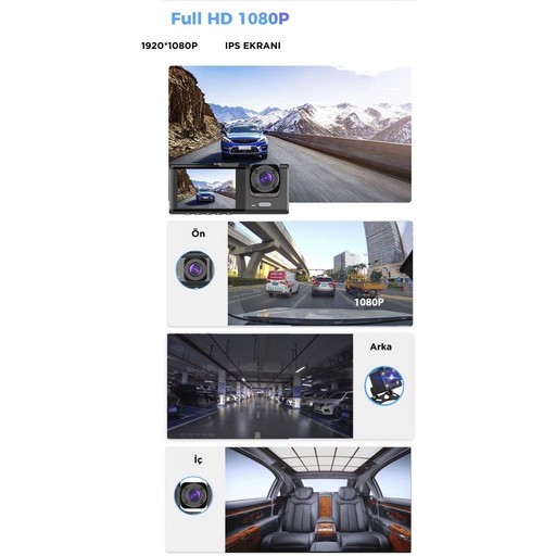 1080p Full HD ön kamera ve 720p HD iç ve arka kameralar,keskin ve net görüntüler sunarak plakaları ve diğer önemli ayrıntıları yakalamanızı kolaylaştırır.