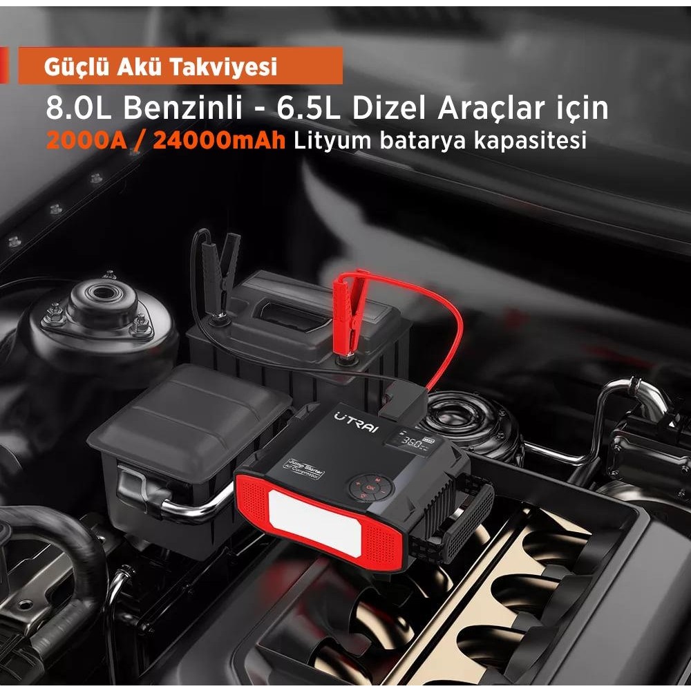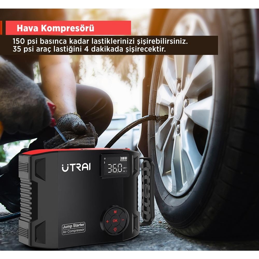 UTRAI Jstar JS5 24000mAh 2000A 4 in 1 Jump Starter Hava Kompresörlü Taşınabilir Akü Takviye Kiti (JS-5)