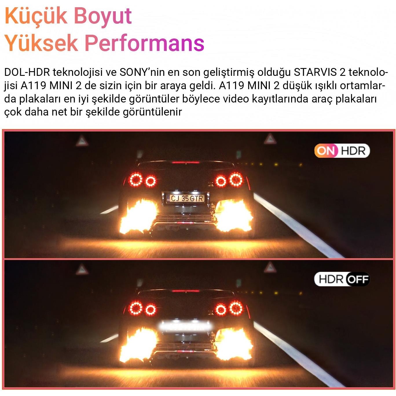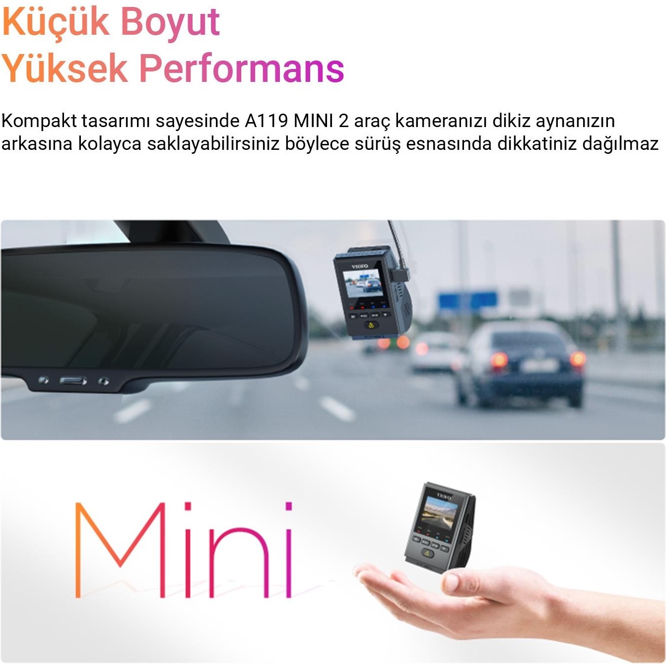 Viofo A119 Mini 2 2K HDR 1600P 5GHz WiFi GPS’li Araç Kamerası, sürüş güvenliğinizi arttırmak için en üst teknoloji ile donatılmıştır. İçerisinde bulunan Sony STARVIS 2 IMX675 sensörü 140° lensle birlikte görüntüleri en net şekilde kaydeder. DOL-HDR teknolojisi sayesinde ışıklandırmalar otomatik olarak yapılır böylece kaydedilen videolarda detaylar kaybolmaz araç plakaları gündüz veya gece en iyi şekilde okunur. Dahili Wi-Fi modülü A119 MINI 2 ile bağlantı kurarak mobil uygulama üzerinden kamera ayarlarını yapabilir, canlı olarak izleyebilir veya kaydedilmiş bir videoyu indirebilirsiniz. Sesli geri bildirimi ve küçük boyutu sayesinde odağınızı yoldan ayrılmaz böylece daha güvenli bir sürüş yaşarsınız. Opsiyonel olarak alacağınız park modu kitlerini kullanarak park modlarını kullanabilirsiniz. Hareket algılama, hızlı çekim, düşük bit hızlı kayıt gibi park modlarını kullanarak aracınızın yanında değilken aracınızı güven altına almış olursunuz. Kayıtlarınızı daha kaliteli hale getirmek için opsiyonel olan CPL filtreyi alarak güneş ışığı ve yansıma gibi alınan video kaydının kalitesini düşüren sorunlardan kurtulabilirsiniz. A119 MINI 2 sahip olduğu GPS modülü sayesinde hız, zaman, rota gibi verileri video içine şifreler böylece uygun görüntüleyici kullanılarak kayıtlar izlendiğinde bu verilere ulaşabilirsiniz. Dahili bluetooth modülü ise opsiyonel olarak alacağınız Viofo uzaktan kumanda ile eşleşerek acil durum kayıt tuşunu uzaktan tetikleme imkânı sağlar. Acil durum kayıt özelliği kaza anında otomatik olarak tetiklenerek kaza anını silinmeyecek şekilde kaydeder, bu özelliğin tetiklenmediği kazalarda özelliği manuel olarak kumandanızdan veya kamera üzerinden aktif edebilirsiniz böylece kameraların olmadığı bir alanda güçlü bir kanıtınız olur.