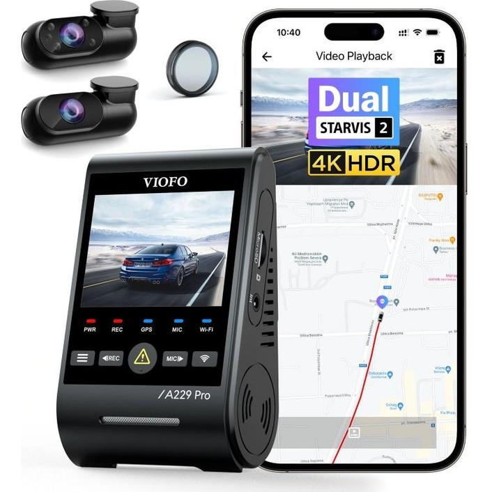 Viofo A229 Pro 3 Kameralı Ön-İç-Arka 4K+2K+1080P HDR Sony Starvis 2 WiFi GPS’li Araç Kamerası yolda güvenle seyahat etmek ve olası olayları yüksek çözünürlükte kaydetmek için tasarlanmıştır. Üç kamerası ile ön, arka ve araç içi kabin görüntülerini yakalayarak geniş bir perspektif sunar. Sony Starvis 2 sensörleri ile donatılan bu kamerada düşük ışık koşullarında bile net ve detaylı görüntüler sağlar.