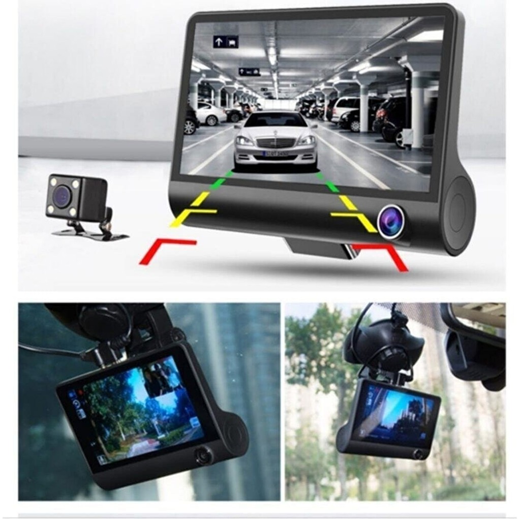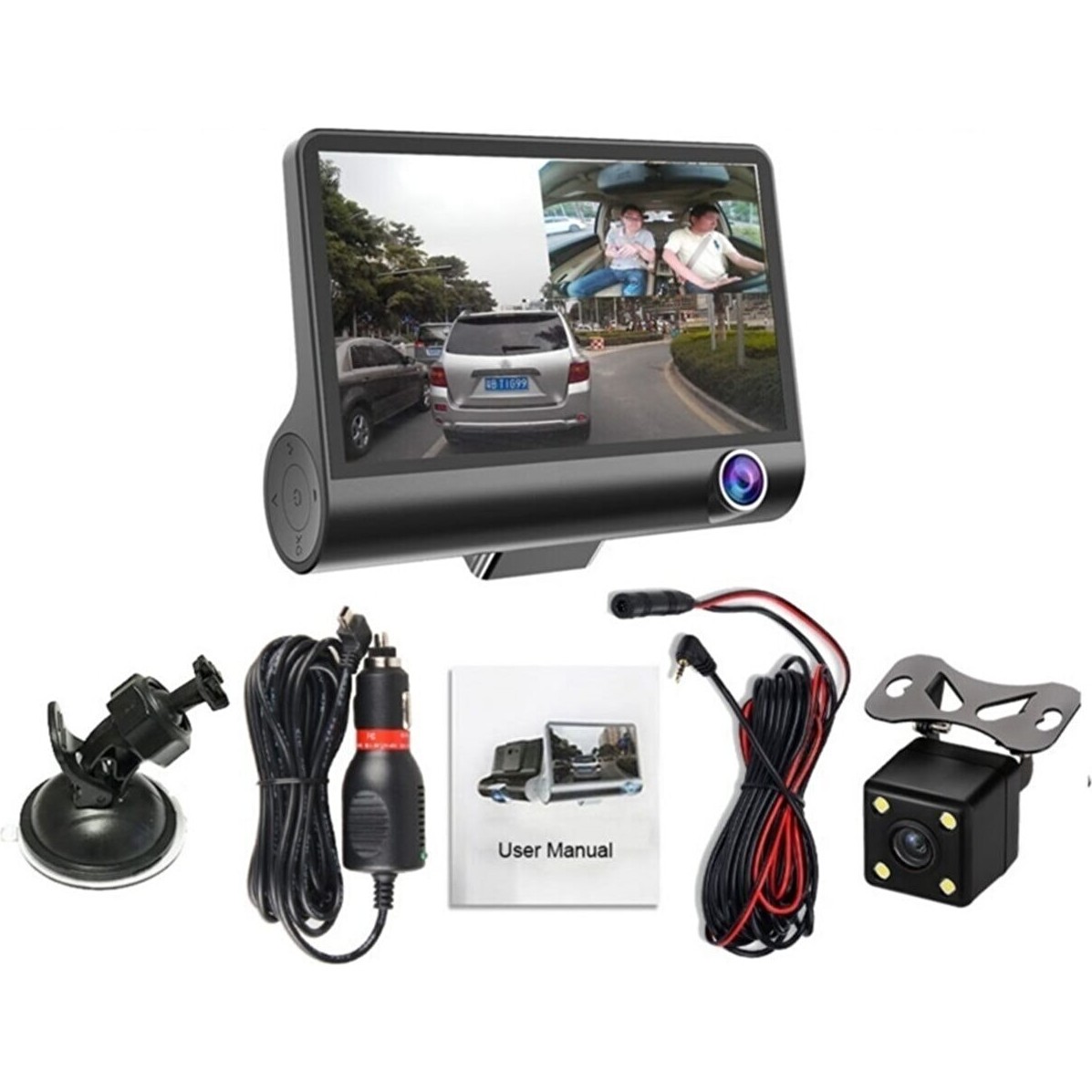 1 adet araç kamerası / 1 adet araç şarjı / adet cam vantus / 1 adet kullanım kılavuzu / 3 kameralı araç içi kamera çift yönlü oto dvr kayıt / Cihaz üzerinde kamera hem öne hem arkaya dönebilir.