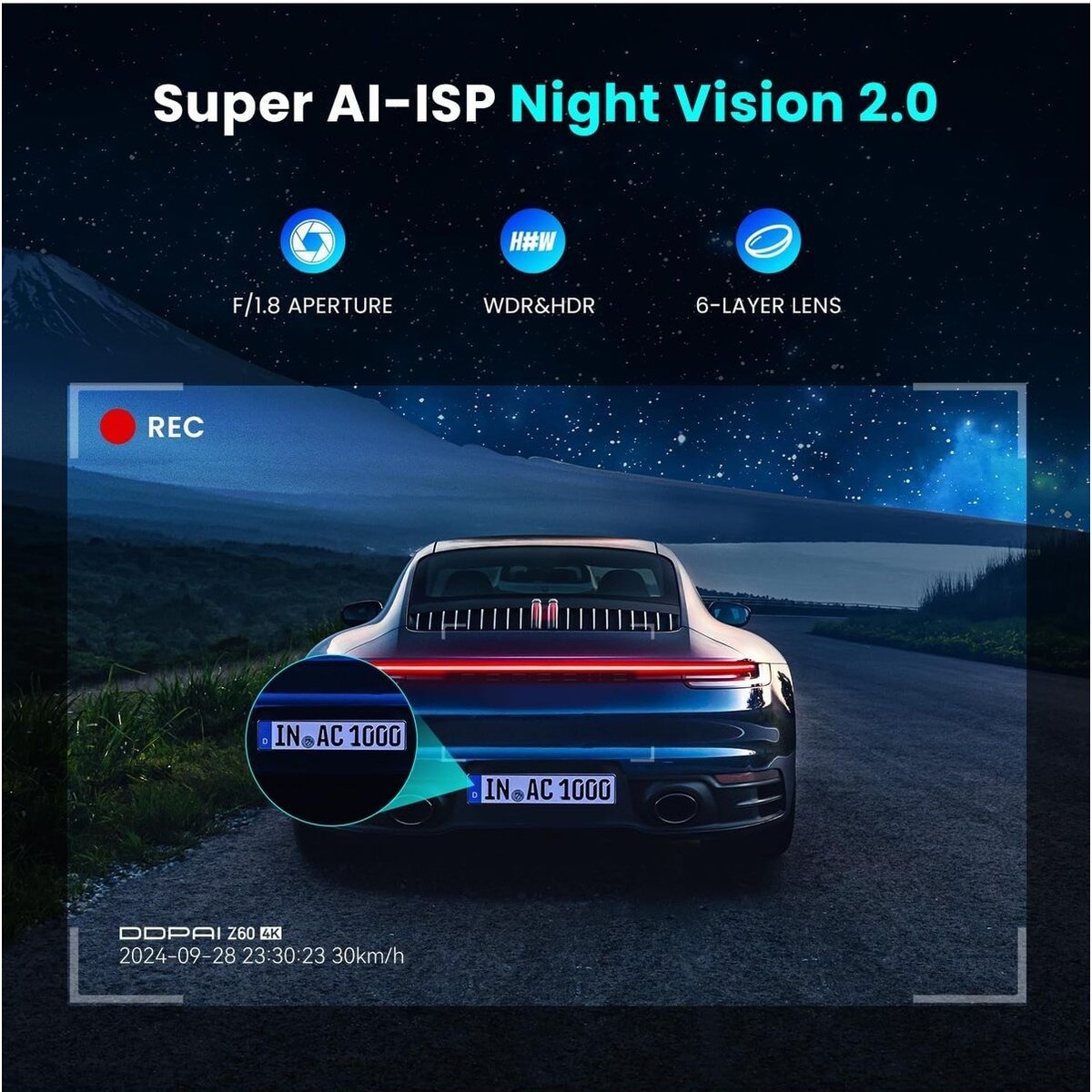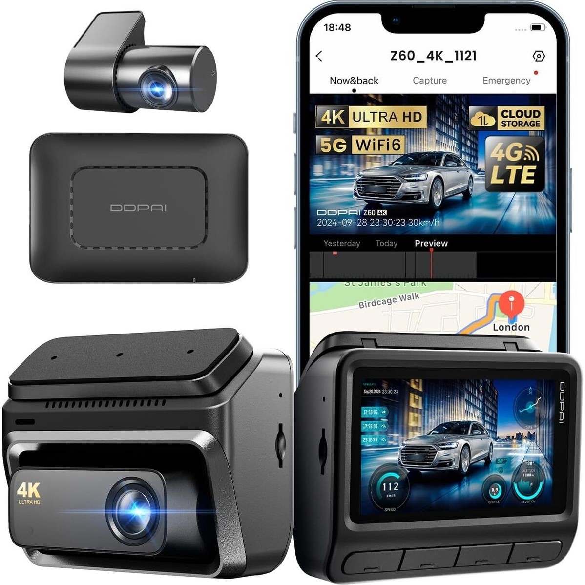 Z60 4g Dash Cam 4K+1080P Ön ve Arka Kamera, Akıllı Bulut Depolama ve 24 Saat Park Izleme