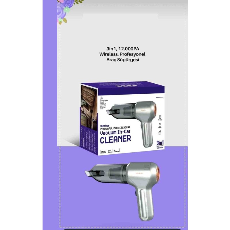 Zoli Kablosuz Şarjlı Mini Araba Süpürgesi,şarj Edilebilir,turbo Hız Kademeli Motor 12.000PA Güçlü Emiş,